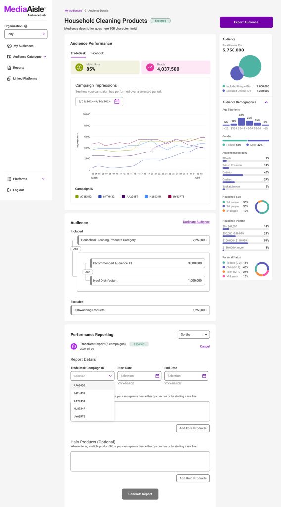 Users couldn’t view audience demographics in real-time, which made it difficult to gain insights and make informed decisions. I designed a sidebar that displayed live data, allowing users to explore and act on information quickly. The result was a more transparent, actionable experience that helped teams understand their audiences and optimize campaigns.