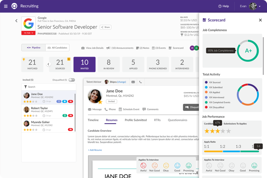 Accelerated candidate review and hiring by simplifying key actions and reducing unnecessary steps, enabling users to review, shortlist, and hire candidates more efficiently while supporting faster, more confident decision-making.